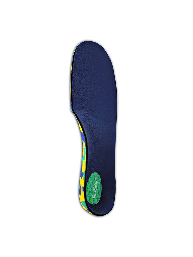 - Kidsole Camo Comfort children's insole is ergonomically designed to help relieve pressure and foot pain on the heel and arch.