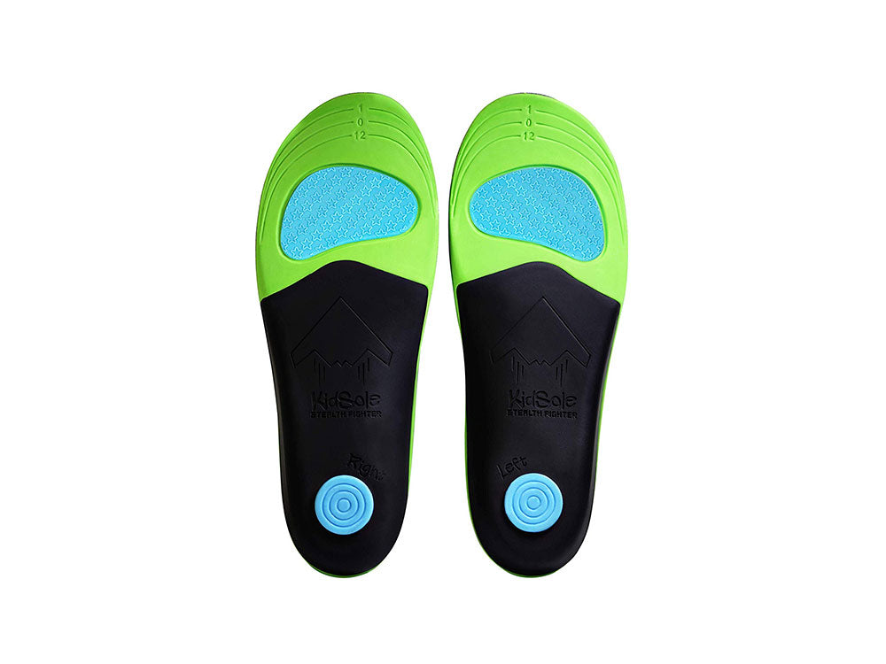 - The KidSole Stealth Fighter insole has a strongly reinforced arch with a soft memory foam top cushion and two gel heel pads on the bottom for traction.